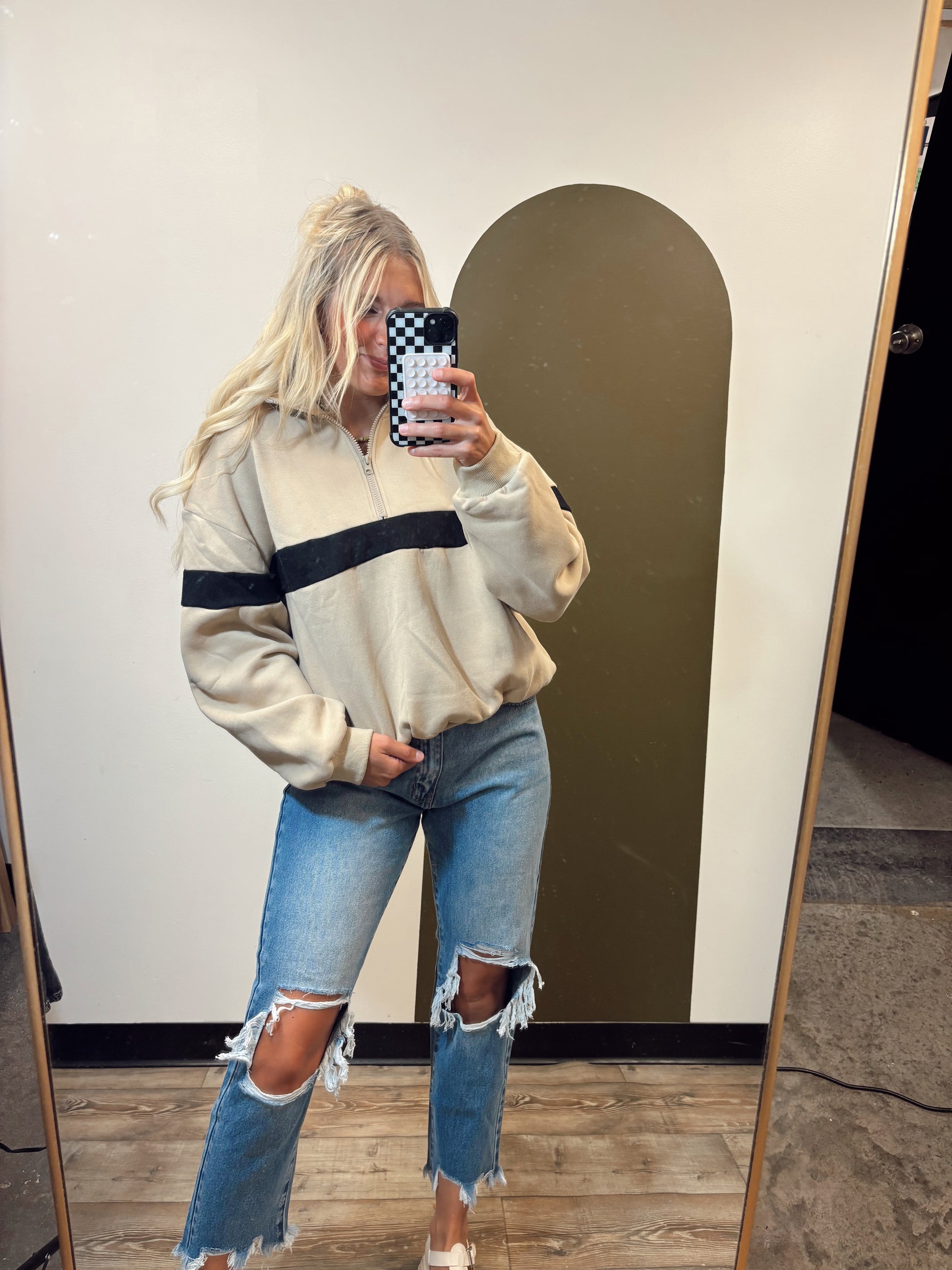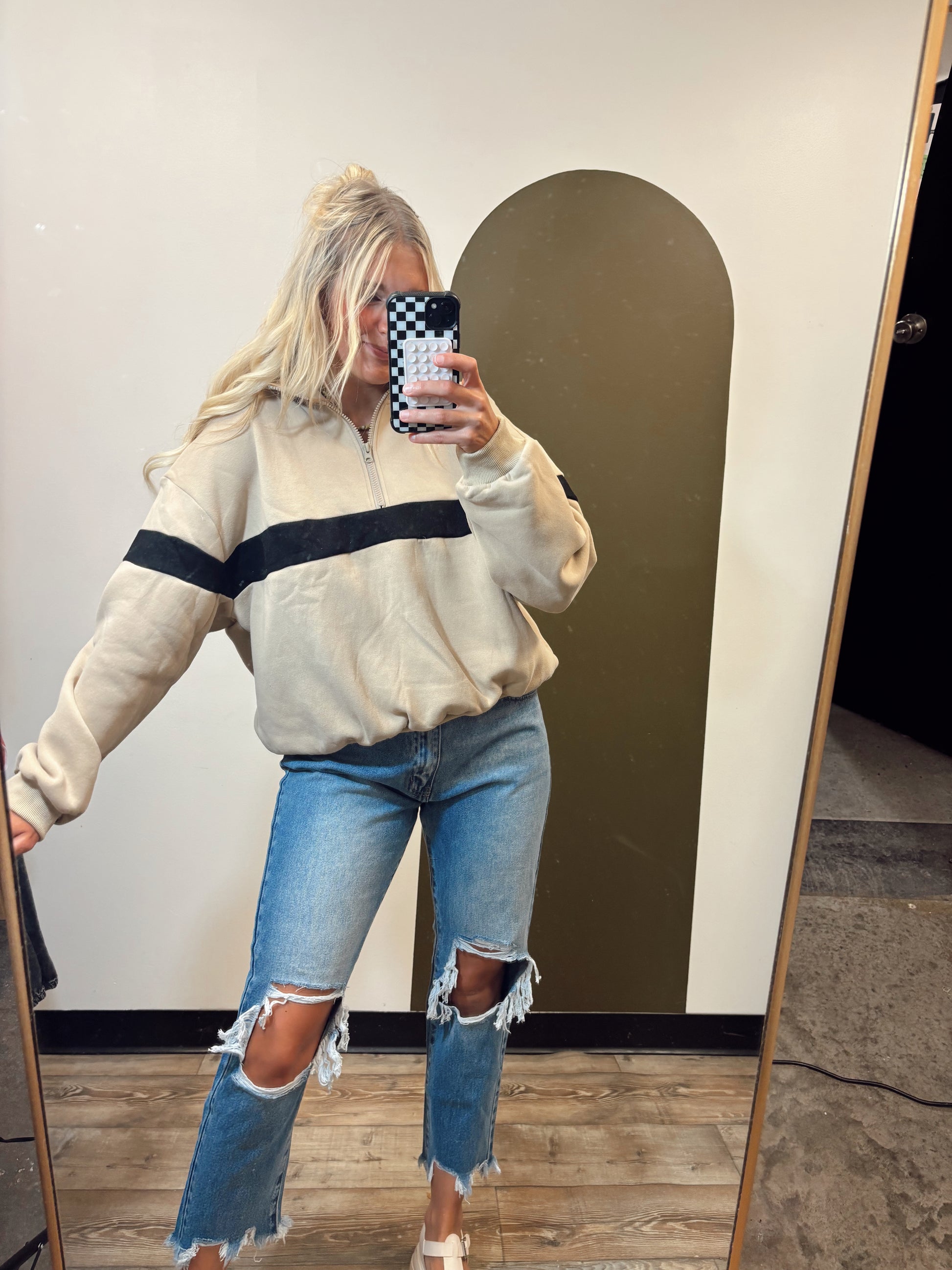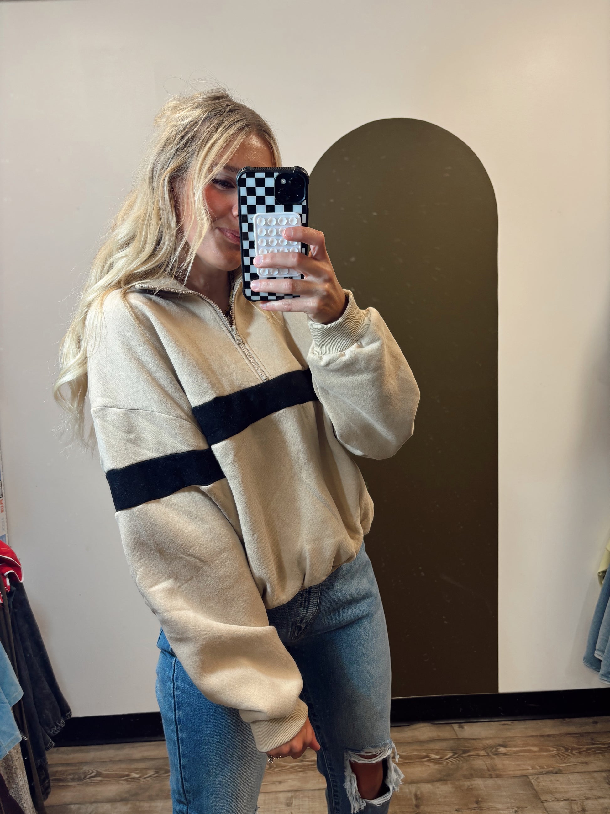 Undergrad Stripe Sweat Top (Taupe/Black)